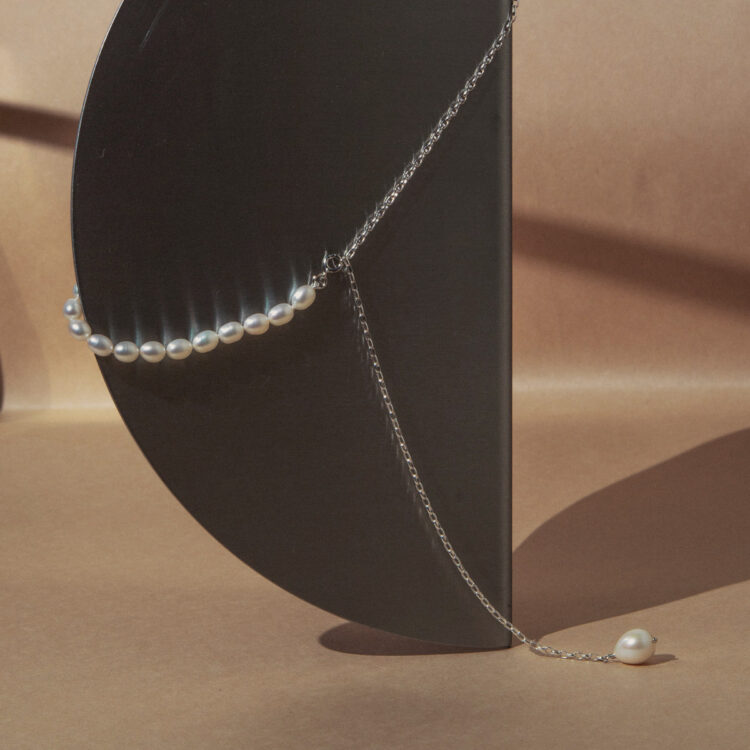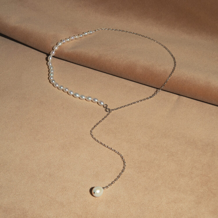 Гривна от фини перли на верижка | 3,5 - 4,5 мм | Барокови перли | 5 x 3 бр.