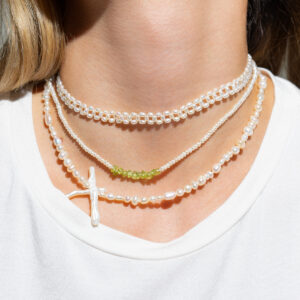 Гривна от фини перли на верижка | 3,5 - 4,5 мм | Барокови перли | 5 x 3 бр.