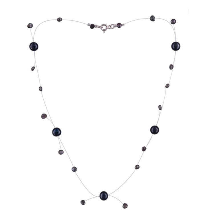 Black Pearl Necklace on Illusion Cord | 8 – 9 – 10 mm | Round Pearls | 1 pcs.
