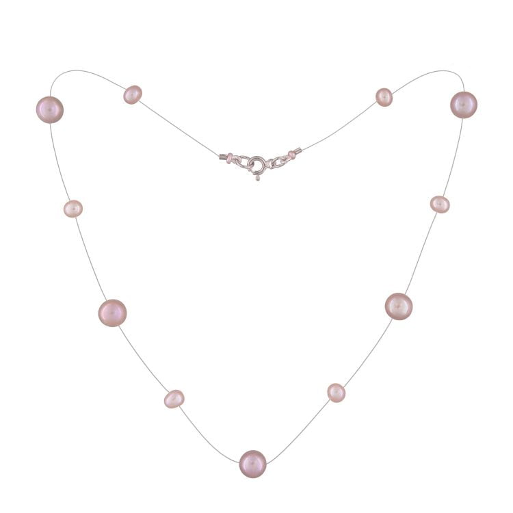 Lavender Pearl Necklace on Illusion Cord | 7.5 – 8.5 and 4.5 – 5.5 mm | Round Pearls | 11 pcs.