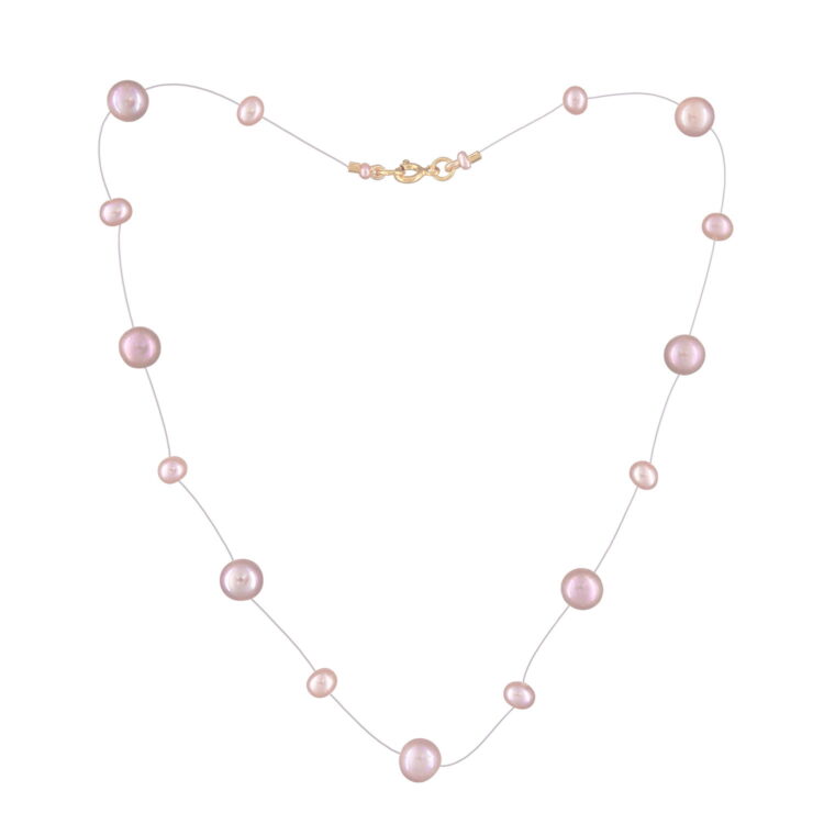 Lavender Pearl Necklace on Illusion Cord | 7.5 – 8.5 and 4.5 – 5.5 mm | Round Pearls | 21 pcs.