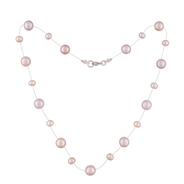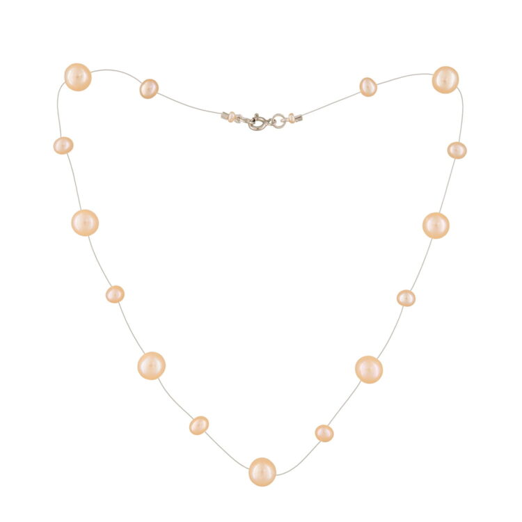 Pink to Peach Pearl Necklace on Illusion Cord | 6.5 – 7.5 mm | Round Pearls | 15 pcs.