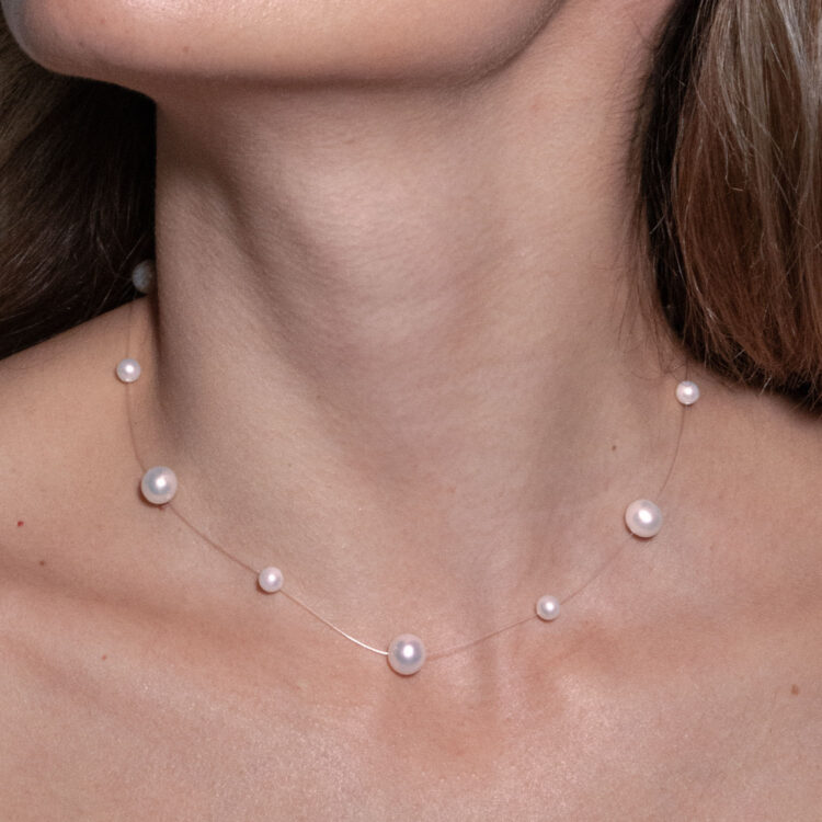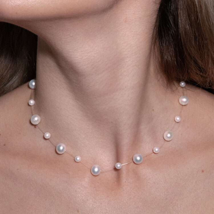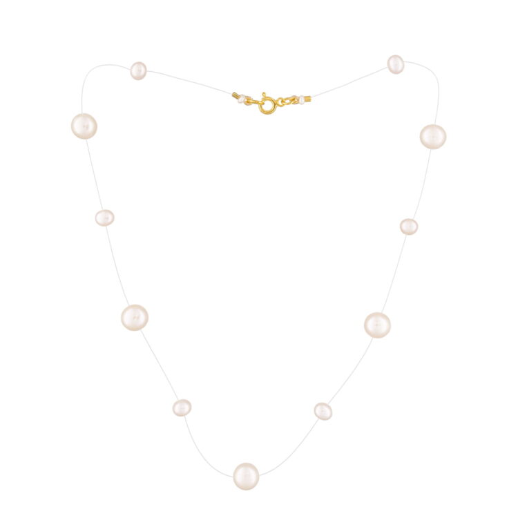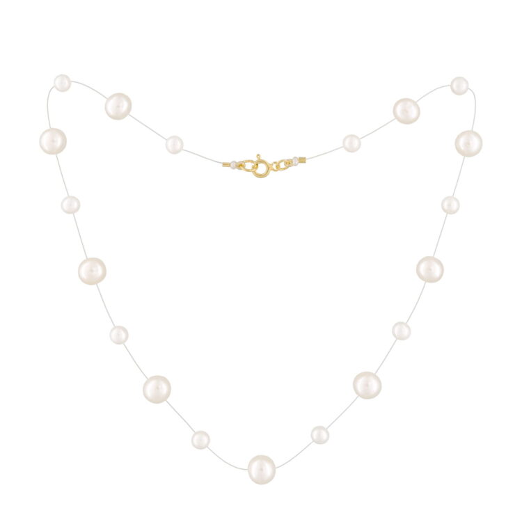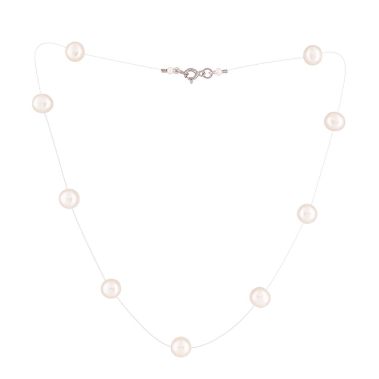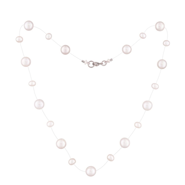 White Pearl Necklace on Illusion Cord | 8 – 9 – 10 mm | Round Pearls | 1 pcs.