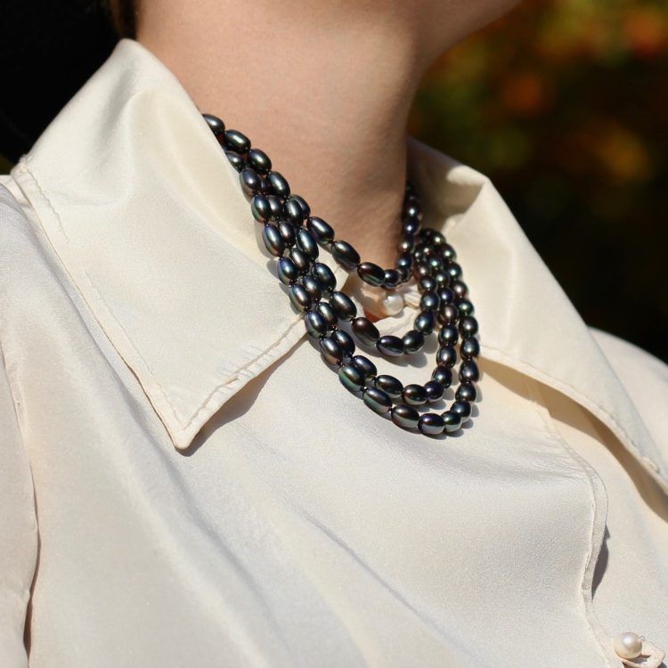 Exclusive large pearl necklace “Black & White” | 11.5 – 12.5 mm | Round Pearls